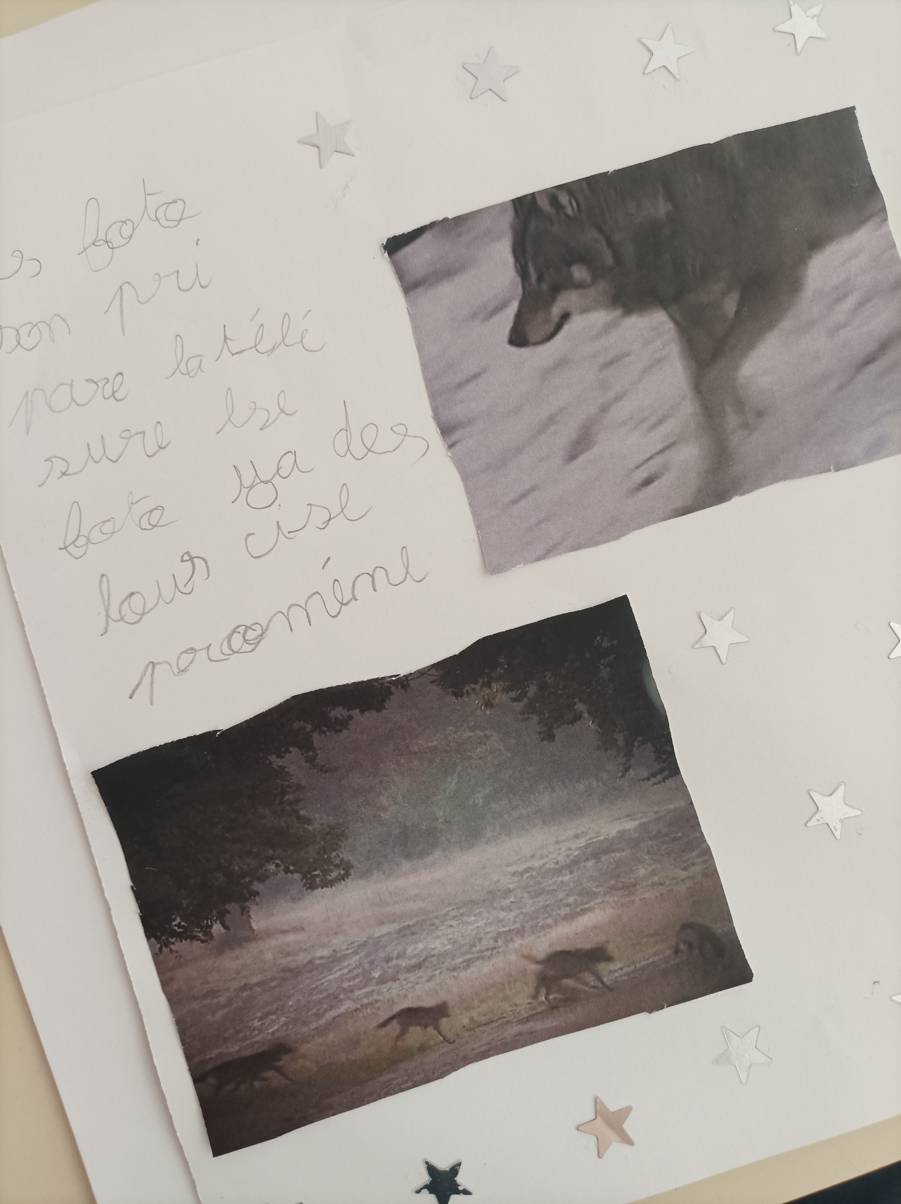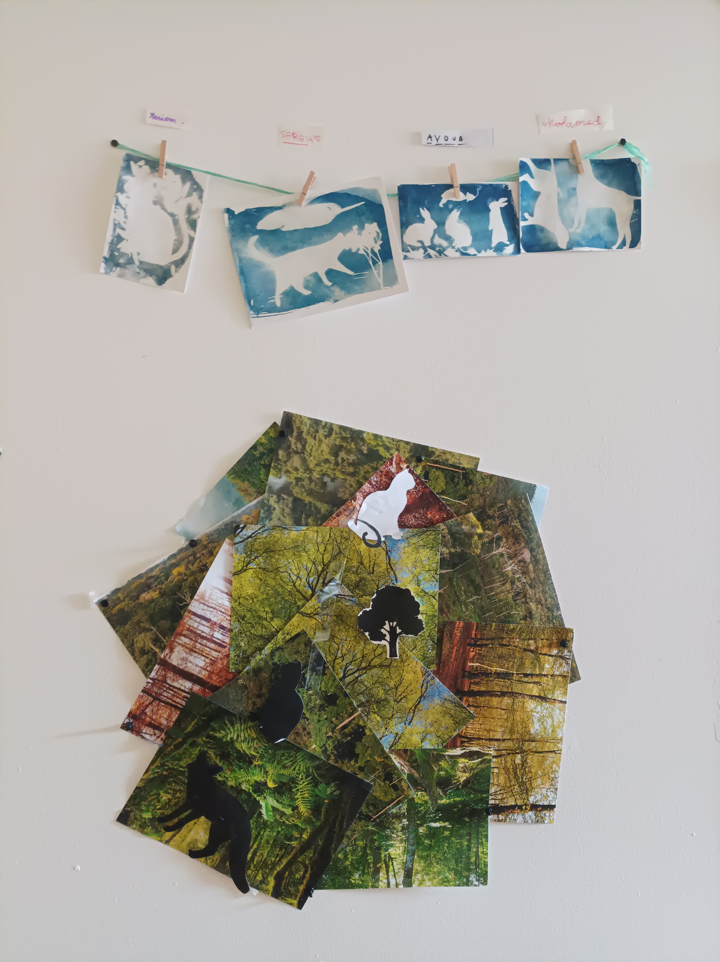Réalisation de photocollage, dessin et peinture. Les enfants ont discuté sur la cohabitation de l’humain avec l’animal.