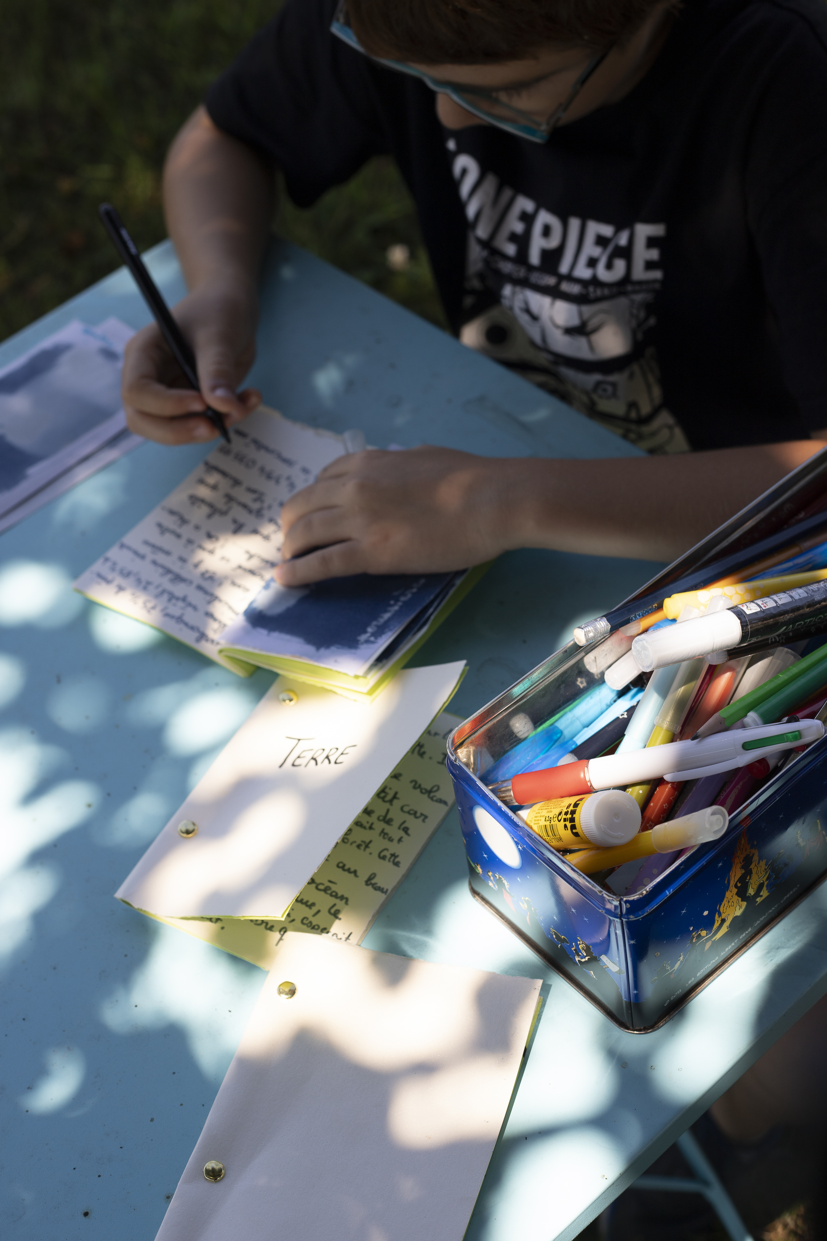 Projet en lien avec l’Asso Petit à Petit et la Cuisine de Grillefeuille à Arles (13200) qui consiste à proposer à des jeunes de prendre des appareils argentiques kodak pour parler ensemble de la perspective, du point de vue et du cadrage. Le regard posé au travers du viseur de l’appareil photo devait être en lien avec un animal totem choisi au préalable. Le but était d’imaginer le point de vue de l’animal choisi et de dresser un portrait imaginaire par l’écriture et l’utilisation du cyanotype.